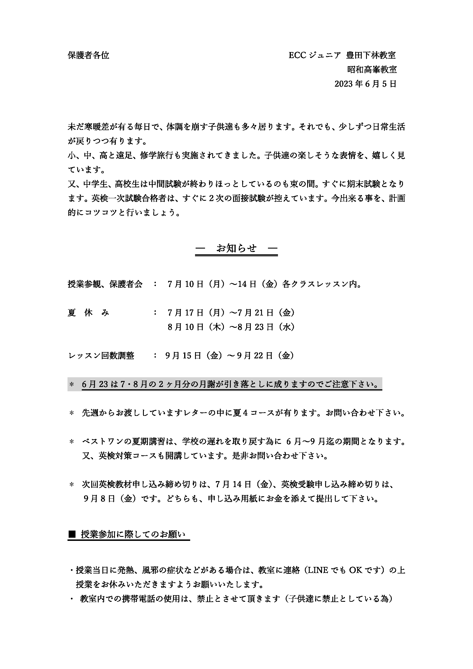 教室だより