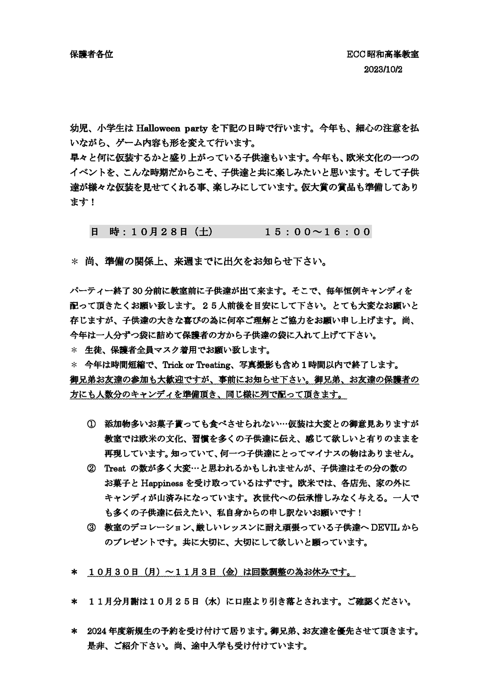 ECCジュニア豊田下林教室/高峯教室/ベストワン豊田校 教室だより10月