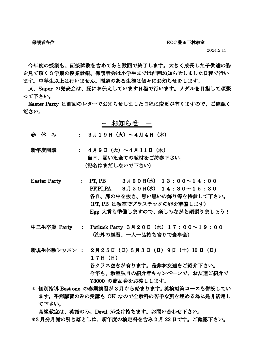 教室だより