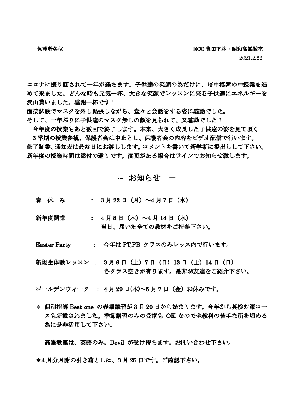 教室だより