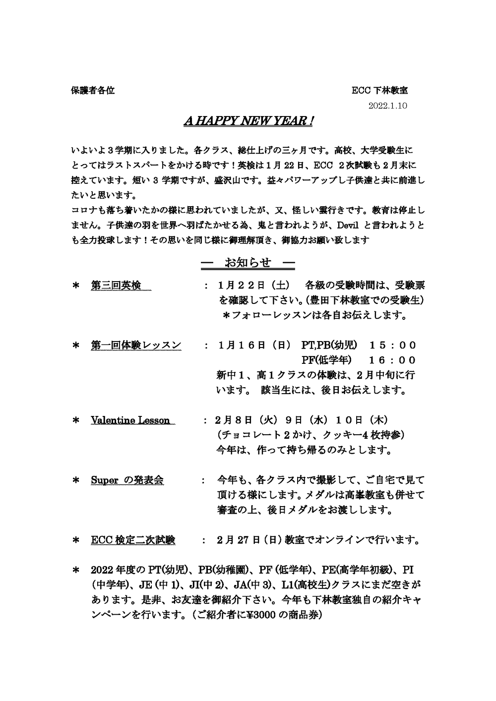 教室だより