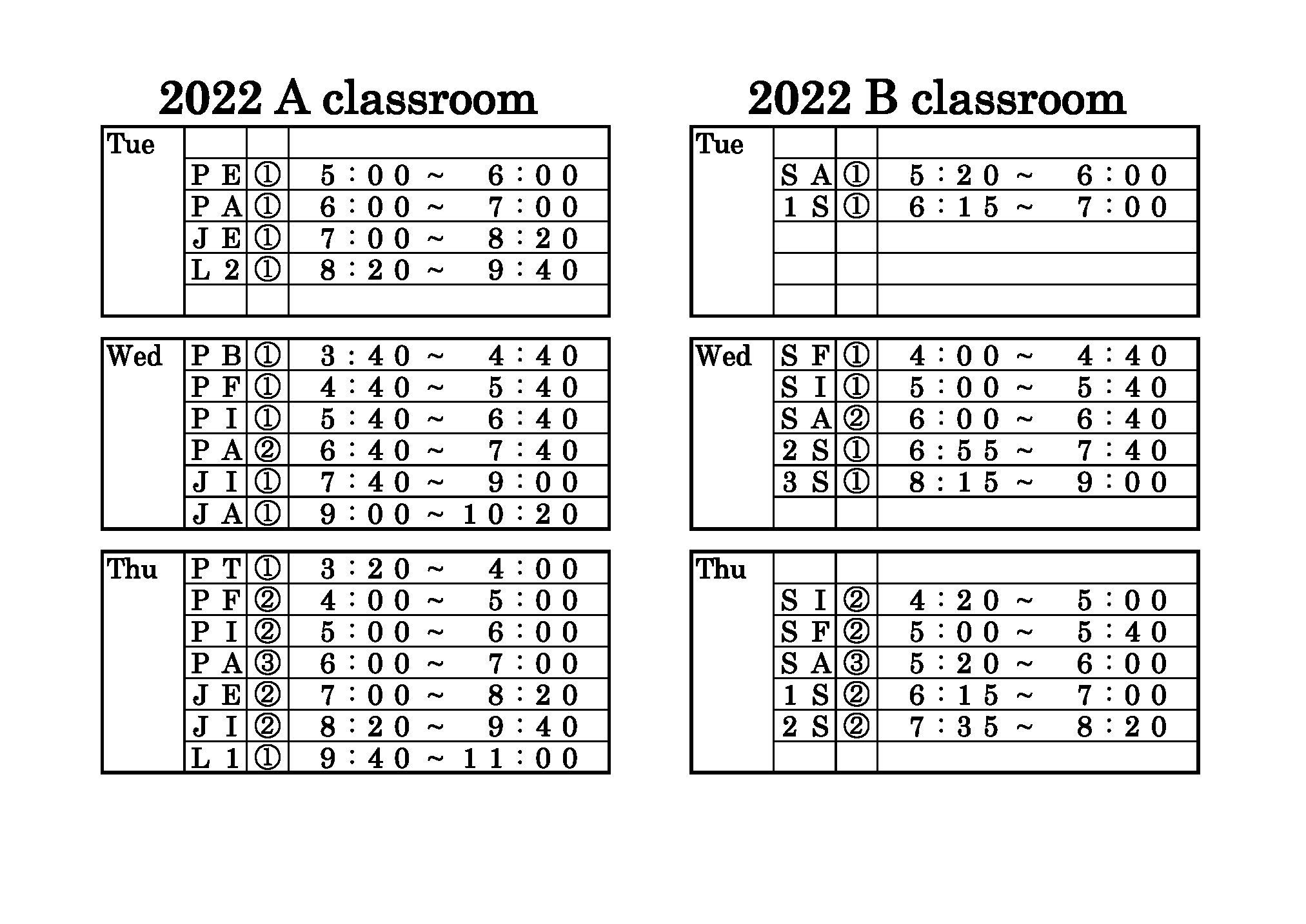ECCジュニア豊田下林教室/高峯教室/ベストワン豊田校 2022年度時間割表下林教室