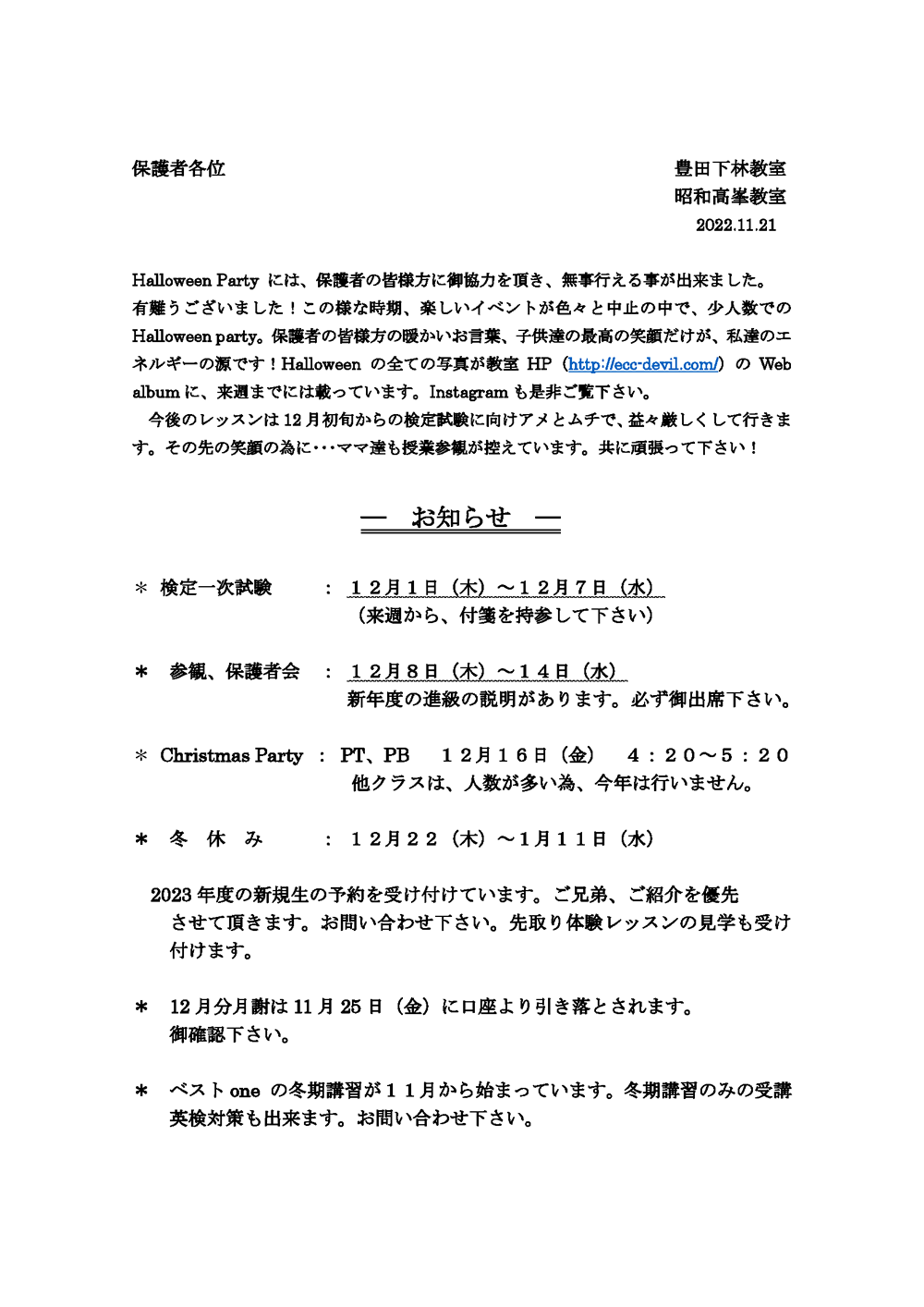 教室だより